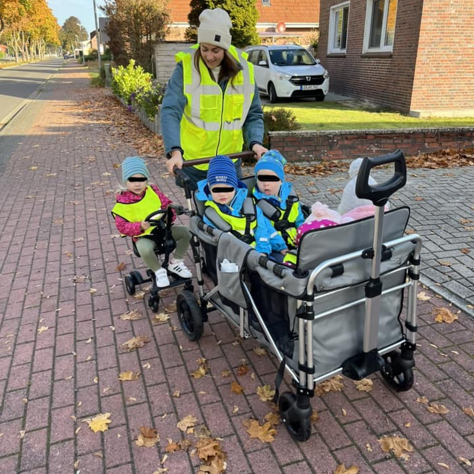 Dieses wundervolle Herbstwetter haben wir übrigens in letzter Zeit häufig für Spaziergänge genutzt. Neben unseren zwei Spazierwagen , in denen jeweils vier Kinder sitzen können, haben wir jetzt noch einen weiteren Platz. Es handelt sich um ein ganz cooles Buggyboard zum sitzen, mit Lenker. Aber schaut selbst auf die Fotos. :D . Die Freude der Kinder auf diesem besonderen Extraplatz mit zu fahren , ist kaum zu beschreiben.