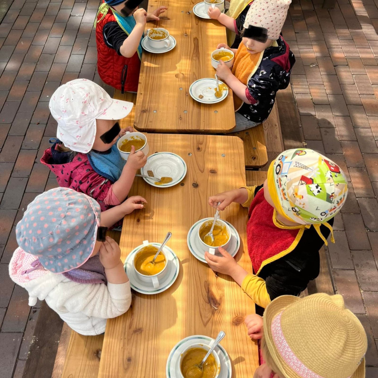 AB NACH DRAUßEN! Was für eine Freude es für die Kinder ist, wenn sie nach einem kalten, oder soll man sagen "verregneten" , Winter das erste Mal draußen an der frischen Luft Mittagessen können.