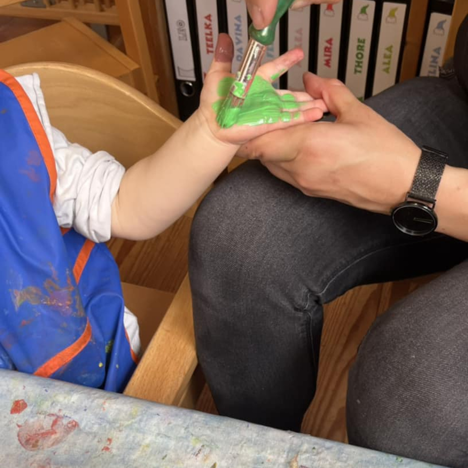 Ein weiteres Ereignis in den letzten Wochen war das Basteln der Muttertags- und Vatertagsgeschenke. In diesem Jahr haben die Kinder sich drei Farben aussuchen dürfen und es wurden Herzen getupft. Eines für die Mama und eines, passend dazu für den Papa. Das Gestalten der Bilder war für die Kinder ein großes Highlight und alle waren voll bei der Sache.